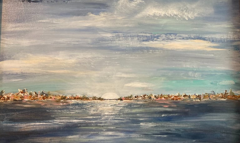 Expressing beauty via unique artwork featuring vibrant landscapes, serene coastal waterfowl, and intricate abstract shapes, each piece tells a story that captivates the viewer's imagination and invites them into a world of artistic exploration and appreciation.